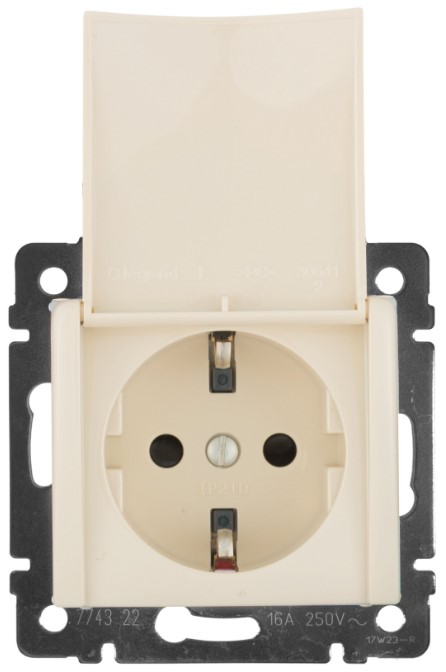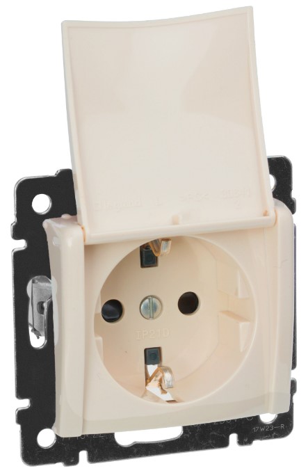 • Розетка с заземлением 1-ая с крышкой винт.зажим Legrand Valena Слоновая кость