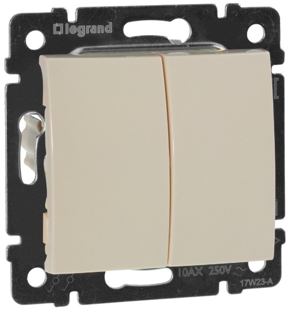 • Выключатель 2-клавишный 10A Legrand Valena Слоновая кость
