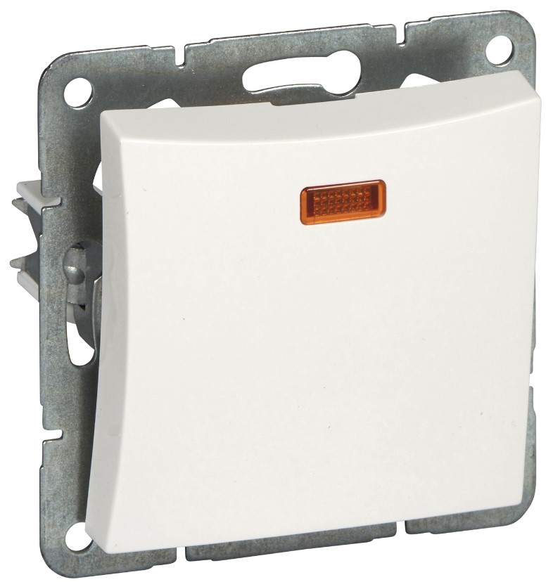 • Выключатель 1-клавишный кнопочный НО-контакт 10A (схема 1) с подсветкой Lexel Дуэт Белый