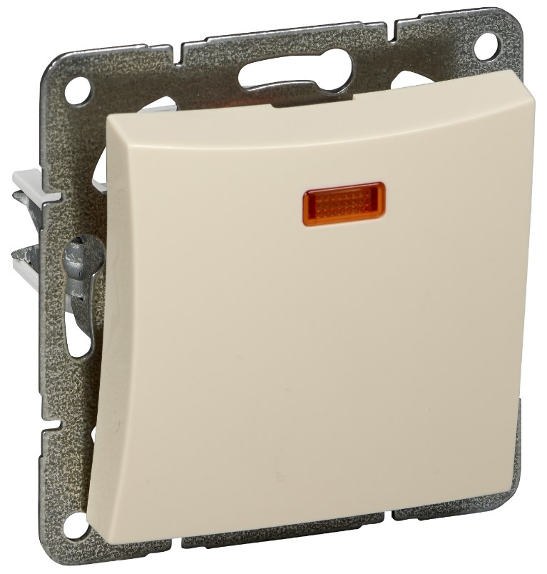 • Выключатель 1-клавишный кнопочный НО-контакт 10A (схема 1) с подсветкой Lexel Дуэт Бежевый