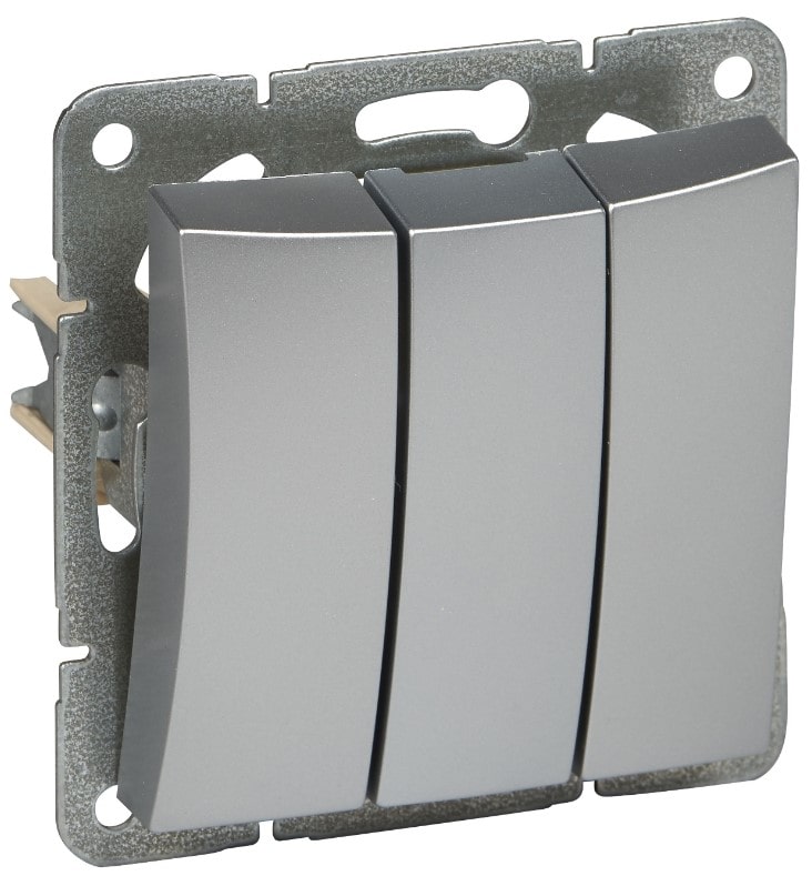 • Выключатель 3-клавишный 10A (схема 3) SE Дуэт Серебристый