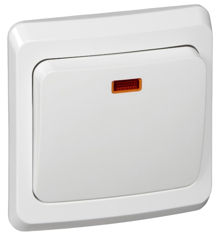 Переключатель 1-клавишный скрытой установки 10A (схема 6) с подсветкой IP20 SE Этюд Белый BC10-007B
