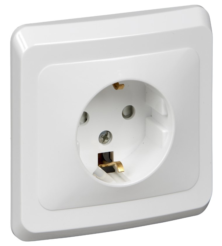 • Розетка 1-ая с заземлением с защитными шторками скрытого монтажа IP20 SE Этюд Белый
