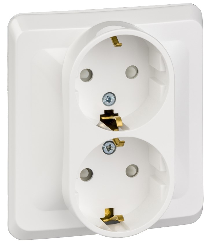 • Розетка 2-ая с заземлением с защитными шторками скрытого монтажа IP20 SE Этюд Белый