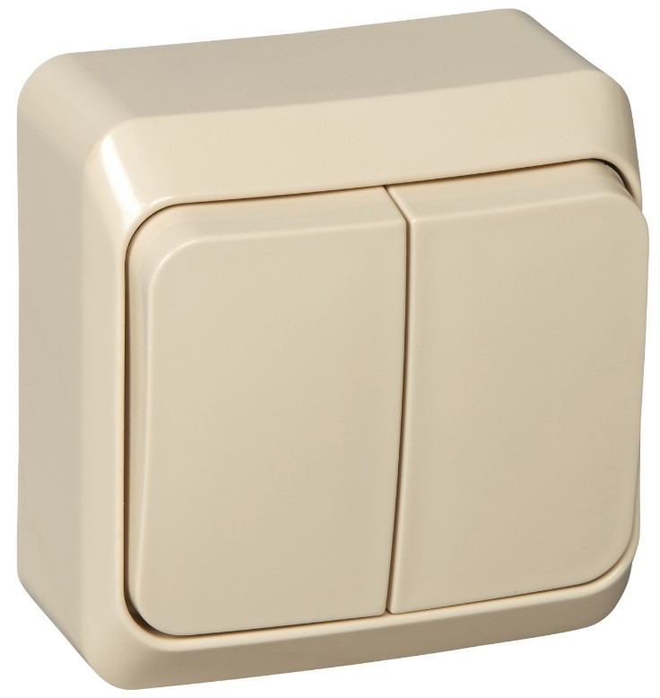 • Выключатель 2-клавишный накладного монтажа 10A (схема 5) с подсветкой IP20 SE Этюд Кремовый