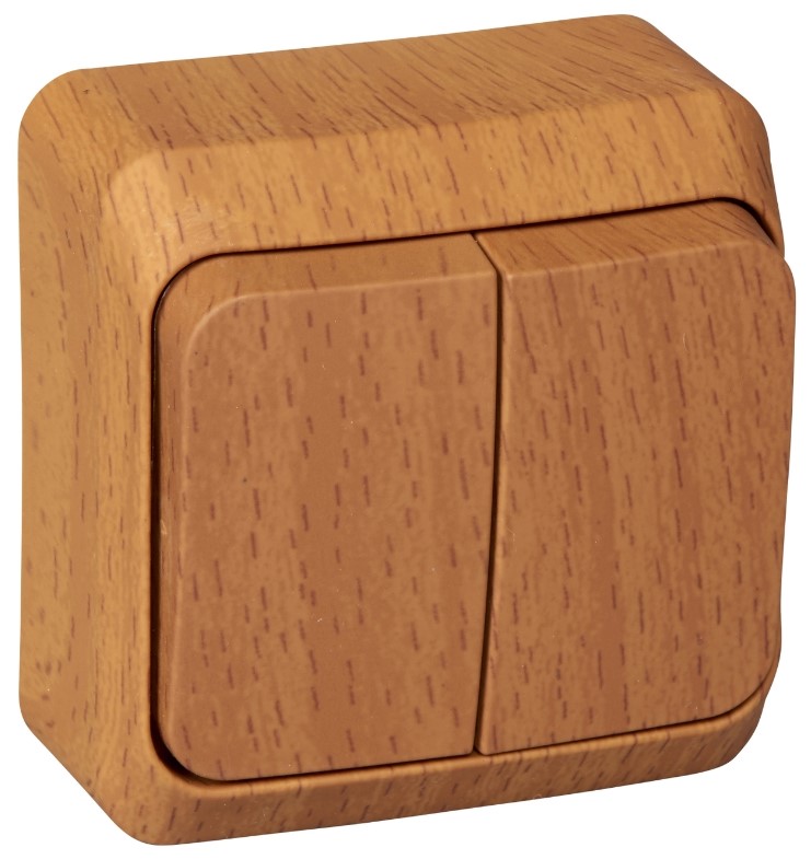 Выключатель 2-клавишный накладного монтажа 10A (схема 5) IP20 SE Этюд Дача Темный бук BA10-002T