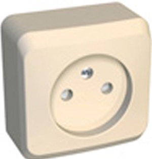 • Розетка 1-ая без заземления с защитными шторками накладного монтажа IP20 SE Этюд Кремовый