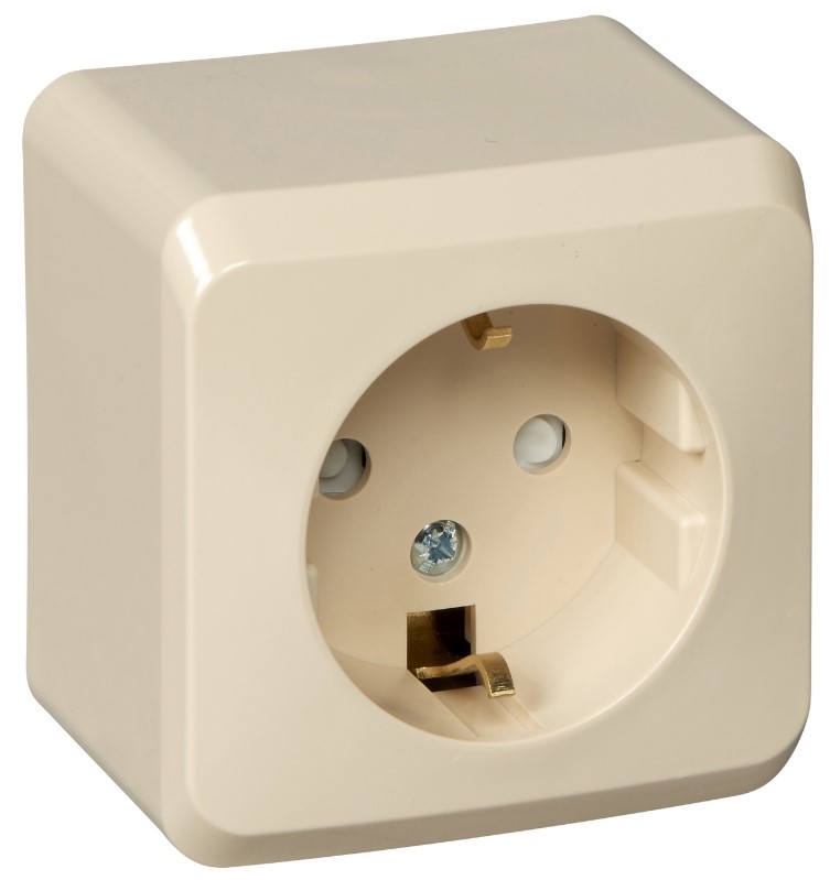 • Розетка 1-ая с заземлением с защитными шторками накладного монтажа IP20 SE Этюд Кремовый
