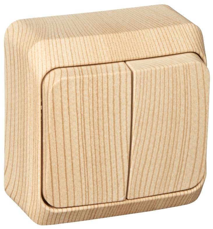 • Выключатель 2-клавишный накладного монтажа 10A (схема 5) IP20 SE Этюд Дача Сосна