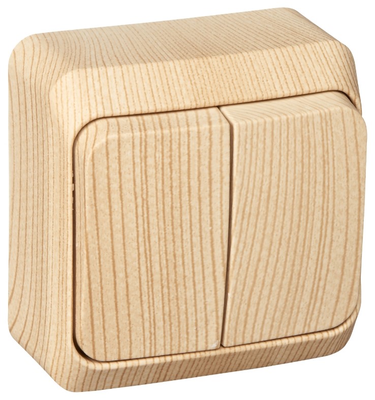 • Выключатель 2-клавишный накладного монтажа 10A (схема 5) с подсветкой IP20 SE Этюд Дача Сосна