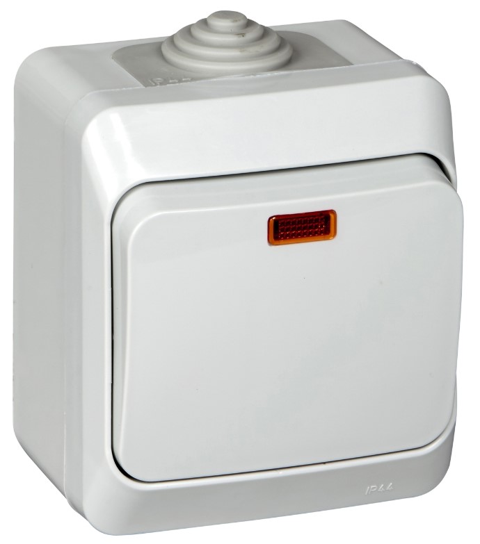 Выключатель 1-клавишный с подсветкой накладного монтажа IP44 SE Этюд Серый BA10-045C