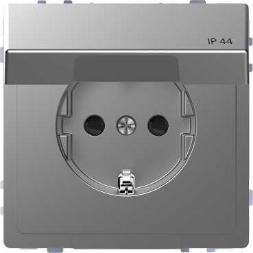 Розетка с заземлением с крышкой 16A безвинт.зажим IP44 Merten D-Life Нержавеющая сталь MTN2314-6036