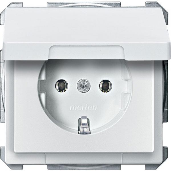 • Розетка 1-ая с заземлением с крышкой безвинт зажим Merten System Design Белый