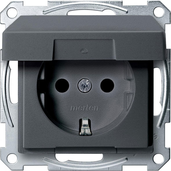 • Розетка 1-ая с заземлением с защитными шторками с крышкой безвинт.зажим Merten System M Антрацит