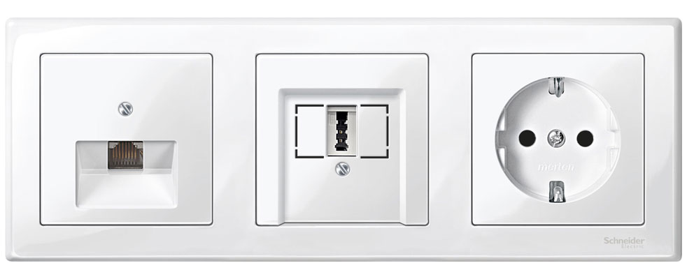 • Накладка розеткок для громкоговорителей/ розеток USB Merten System M Белый глянeц