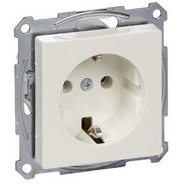 Розетка 1-ая с заземлением с защитными шторками безвинт.зажим Merten System M Бежевый глянeц MTN2300-0344