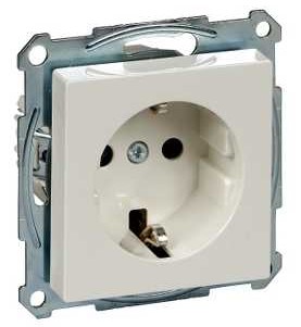 • Розетка 1-ая с заземлением с защитными шторками безвинт.зажим Merten System M Белый глянeц