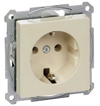 • Розетка 1-ая с заземлением безвинт.зажим Merten System M Бежевый глянeц