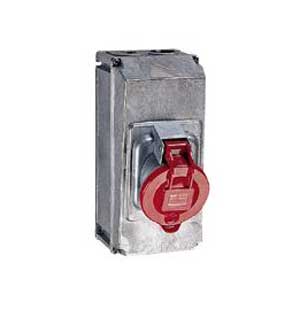 • Накладная розетка Hypra в готовом корпусе с одним отверстием под сальник - IP 44 - 3К+Н+З - 63 А - металл Legrand Legrand  053734