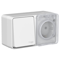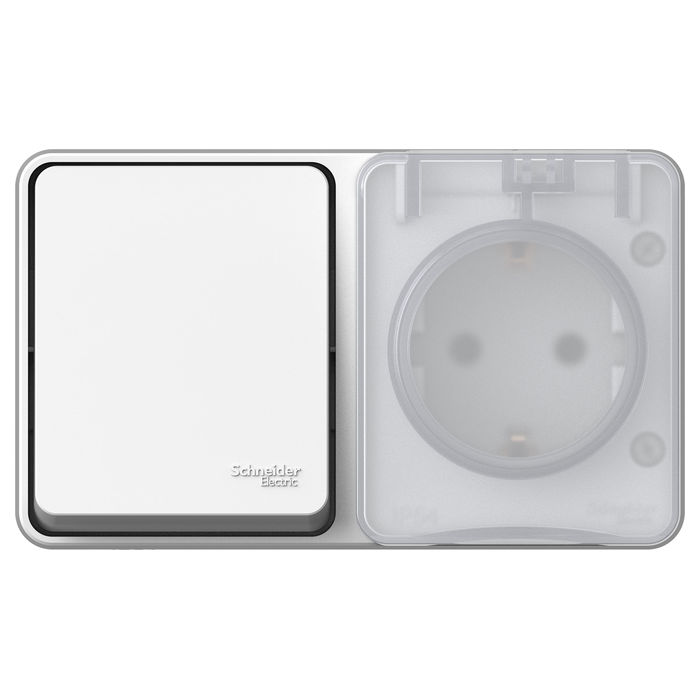 Блок: Розетка с/з со шторками + выключатель 1-клавишный 10А IP54 Schneider Electric AtlasDesign Profi54 Белый ATN540170