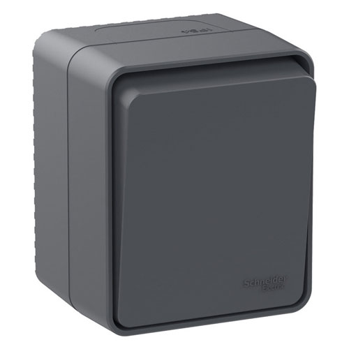 • SE AtlasDesign Выключатель 1-клавишный Кнопочный Антрацит PROFI IP54 О/У 10 АХ