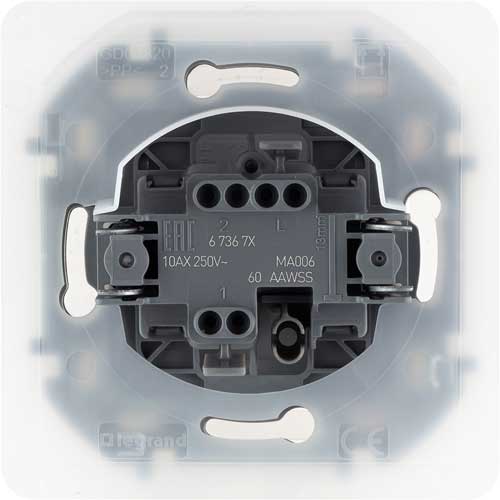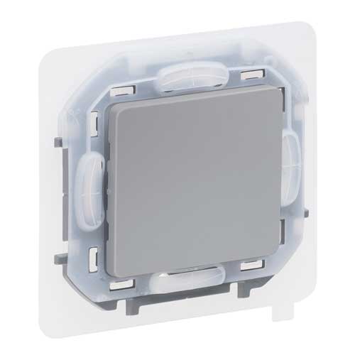Переключатель 1-клавишный пылевлагозащитный для скрытого монтажа, 10 А, напряжение ~250В, IP44 Legrand Inspiria Алюминий 673672