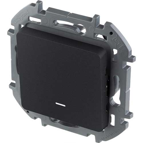 Переключатель 1-клавишный с подсветкой/индикацией для скрытого монтажа, 10 А, напряжение ~250В Legrand Inspiria Антрацит 673663