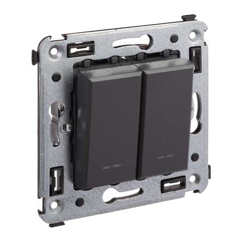 • Переключатель 2-клавишный в стену DKC Avanti Черный матовый