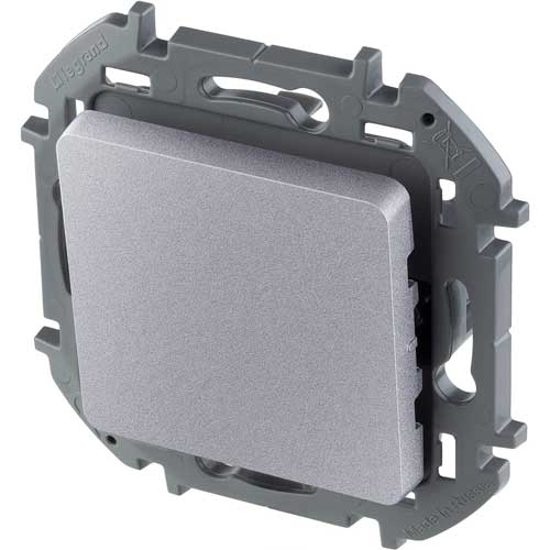 Переключатель кнопочный одноклавишный для скрытого монтажа, 6 А, напряжение ~250В Legrand Inspiria Алюминий 673692