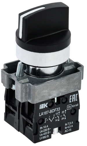 Переключатель LA167-BDF33 3 полож. 2з черный IEK IEK арт: BSW20-BDF33-4-24-67-3-K02 - купить, цена и фото в интернет-магазине РКМ-Электро