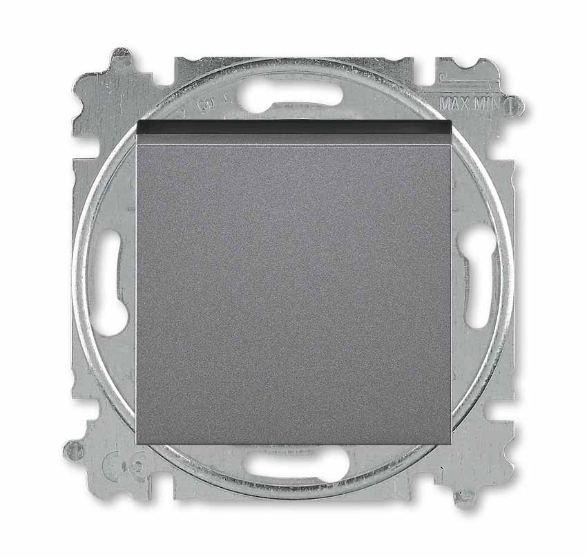 • Переключатель перекрёстный одноклавишный сталь / дымчатый чёрный ABB Levit M