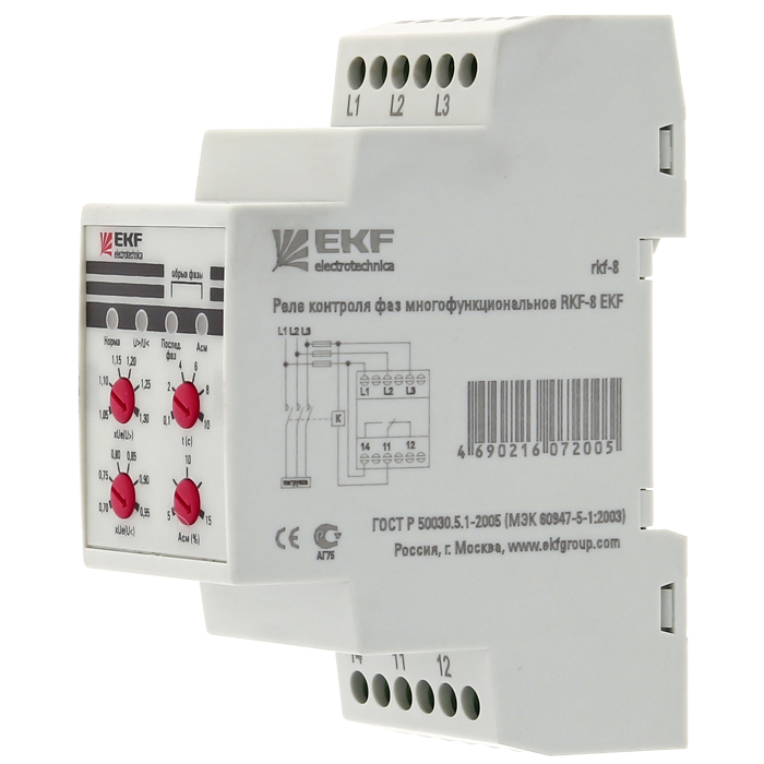 • Реле контроля фаз многофункциональное EKF PROxima RKF-8