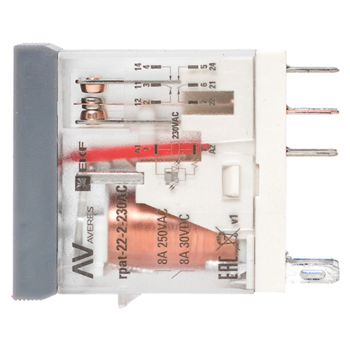 Реле промежуточное с кнопкой и мех. индикацией RPAt 22/2 8A 230В AC EKF AVERES арт: rpat-22-2-230AC - купить, цена и фото в интернет-магазине РКМ-Электро