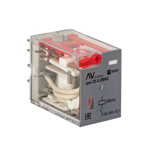 Реле промежуточное с кнопкой и мех. индикацией RPAt 22/3 10A 230В AC EKF AVERES арт: rpat-22-3-230AC - купить, цена и фото в интернет-магазине РКМ-Электро