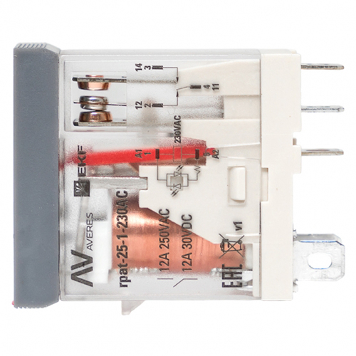 Реле промежуточное с кнопкой и мех. индикацией RPAt 25/1 12A 230В AC EKF AVERES арт: rpat-25-1-230AC - купить, цена и фото в интернет-магазине РКМ-Электро