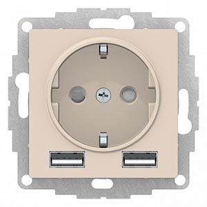 • Розетка 16А c 2 USB A+A, 5В/2,4А, 2х5В/1,2 А, механизм Schneider Electric AtlasDesign Бежевый