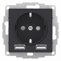 • Розетка 16А c 2 USB A+A, 5В/2,4А, 2х5В/1,2 А, механизм Schneider Electric AtlasDesign Карбон
