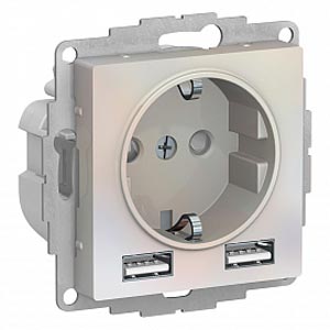 • Розетка 16А c 2 USB A+A, 5В/2,4А, 2х5В/1,2 А, механизм Schneider Electric AtlasDesign Шампань