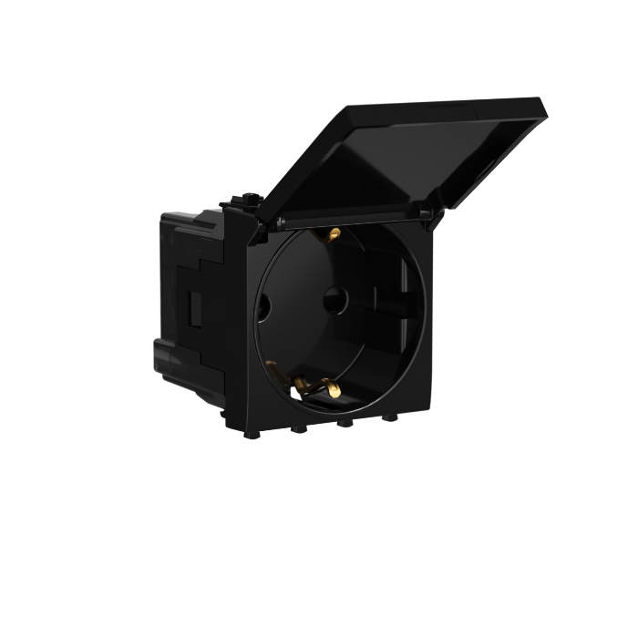 Розетка с крышкой в стену, 2P+E, с з/ш, "Avanti", "Черный квадрат" DKC 4402013DKC