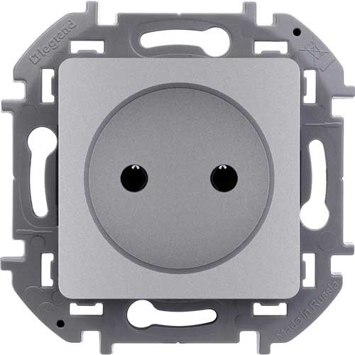 • Розетка без заземления для скрытого монтажа 16 А, напряжение ~250В, 3680 Вт. Legrand Inspiria Алюминий
