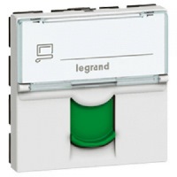 • Розетка RJ45 кат. 6A UTP 1 модуль белая с зеленой шторкой Legrand Mosaic