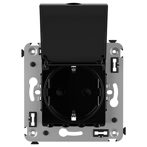 • Розетка с крышкой в стену, 2P+E, с з/ш, "Avanti", "Черный квадрат" DKC