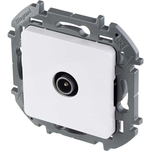 • Розетка телевизионная для скрытого монтажа, для схемы "звезда", 1 дБ 4-2400 МГц, поддержка обратного питания для активных антенн до 500мА Legrand Inspiria Белый