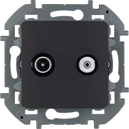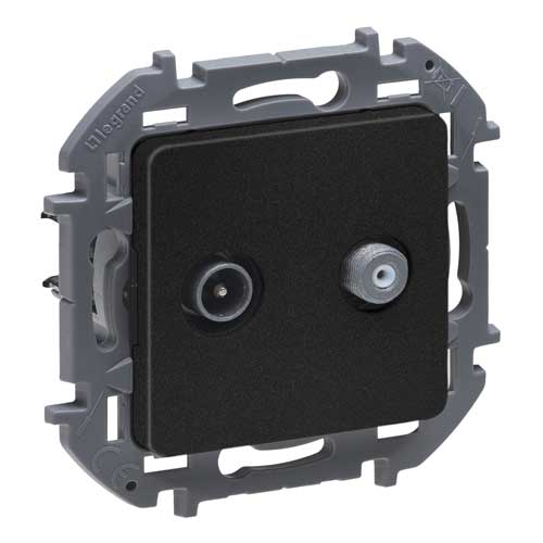 • Розетка телевизионная-спутниковая для скрытого монтажа, для схемы "звезда", 1.5 дБ 4-2400 МГц / 2 дБ 4-2400 МГц, поддержка обратного питания для активных антенн до 500мА Legrand Inspiria Антрацит
