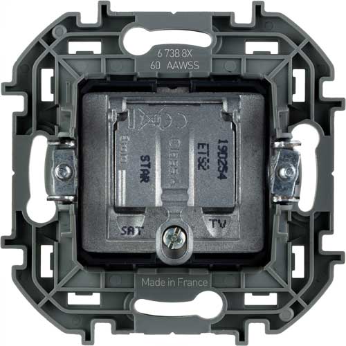 • Розетка телевизионная-спутниковая для скрытого монтажа, для схемы "звезда", 1.5 дБ 4-2400 МГц / 2 дБ 4-2400 МГц, поддержка обратного питания для активных антенн до 500мА Legrand Inspiria Алюминий