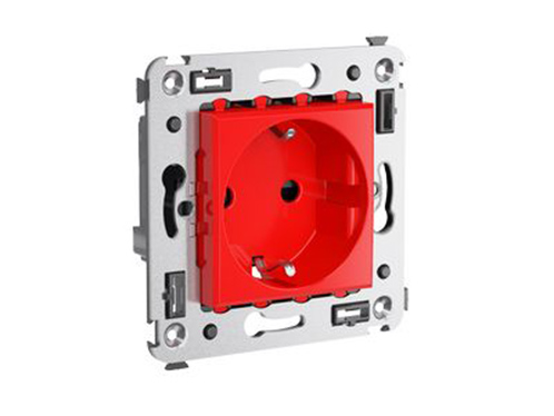 • Розетка в стену, 2P+E, с з/ш, "Avanti", "Красный квадрат" DKC
