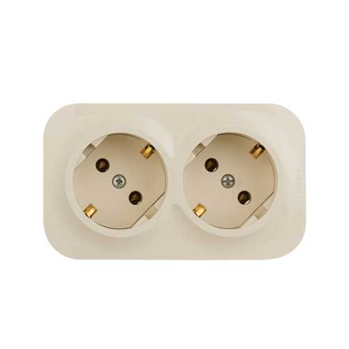 • Розеточный блок с предварительным подключением 2 x 2К+З без шторок - 16 A - 250 В~  IP 20 Legrand Quteo Слоновая кость