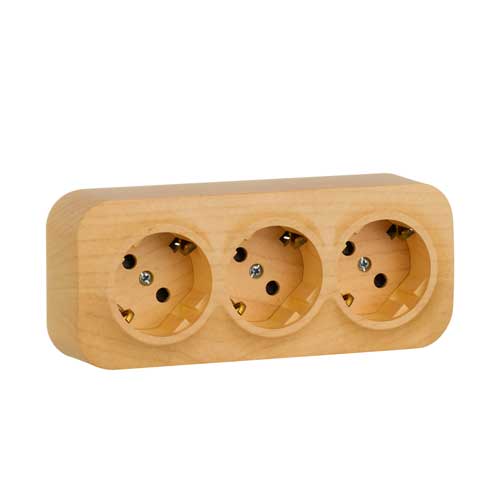 • Розеточный блок с предварительным подключением 3 x 2К+З с защитными шторками - 16 A - 250 В~  IP 20 Legrand Quteo Дерево