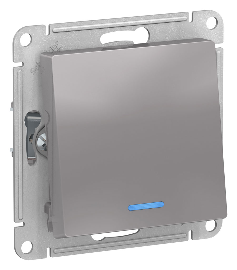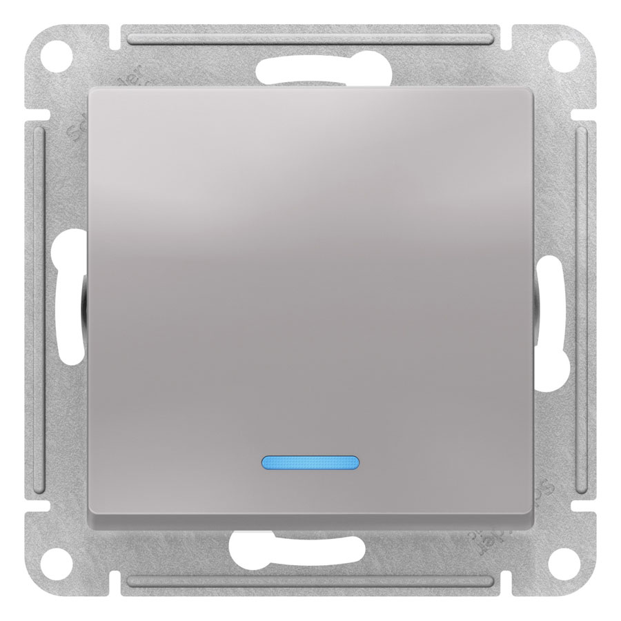 • Переключатель 1-клавишный с подсветкой сх.6A 10AX механизам Schneider Electric AtlasDesign Алюминий