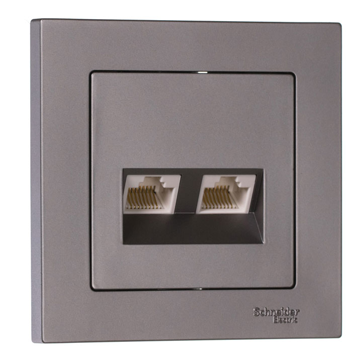 • Розетка двойная компьютерная RJ45+RJ45 кат.5E механизм Schneider Electric AtlasDesign Карбон